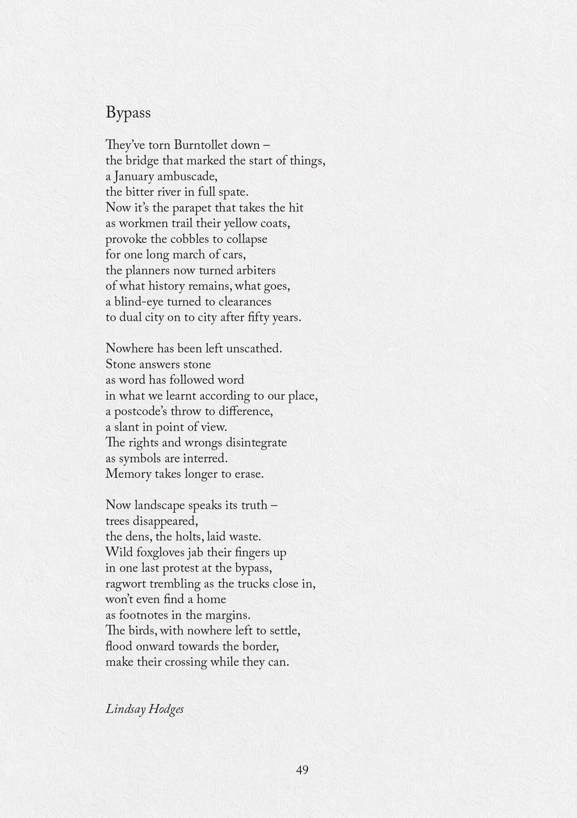 Lindsay Hodges said, “I had made a decision in 2019 that this would be my last year of submitting to CAP. 2020 seemed a fitting way to stop after so many years and I am thankful to have been able to go out on the Longlist at least and with a chance to read a poem that has a lot to say. Many thanks again.