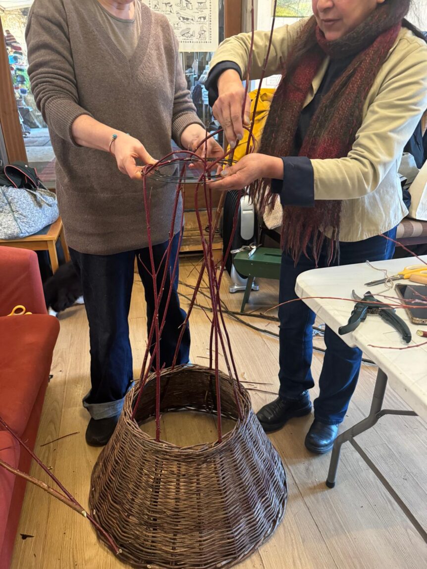 As time passed, this tapestry becomes a cloak. With St. Brigid’s day and the festival of Imbolc coming up to mark the beginning of Spring, the cloak becomes St. Brigid’s cloak. And the Interwoven group are busy now creating an effigy of Brigid, saint, Earth goddess, healer, and poet all in time for Imbolc.
