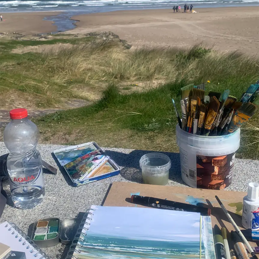 Explore Castlerock beach with Sarah, using mixed-media sketching and mark-making to capturing the sights, sounds, and atmosphere in your sketchbook. Over the following three weeks in the studio, use your sketches, photos, and collected observations to create larger, layered landscape paintings in mixed media, developing your ideas into finished, expressive artworks.