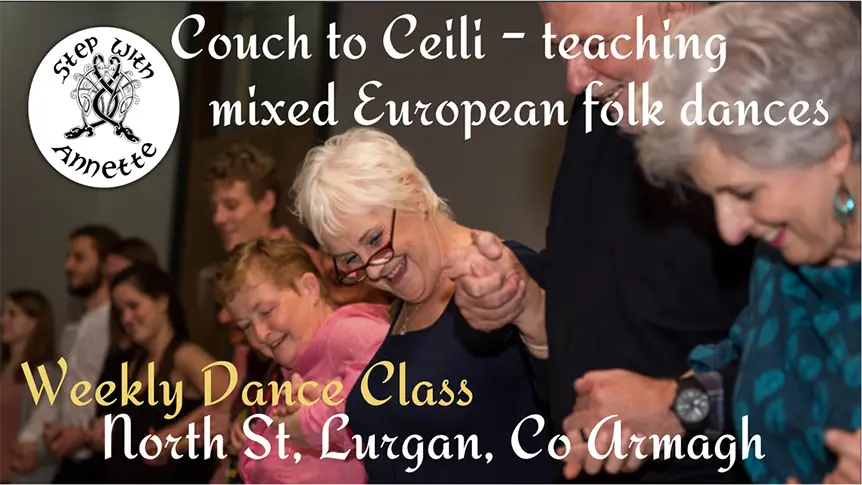 Annette will lead you in a mix of folk dances, all welcome, no partner or experience necessary, instruction will be given – selecting dances from her repertoire of 2-hand dances, Irish Ceili, Scottish, French and Breton dances – in lines, circles and couples You can join at any time, drop-ins welcome.
